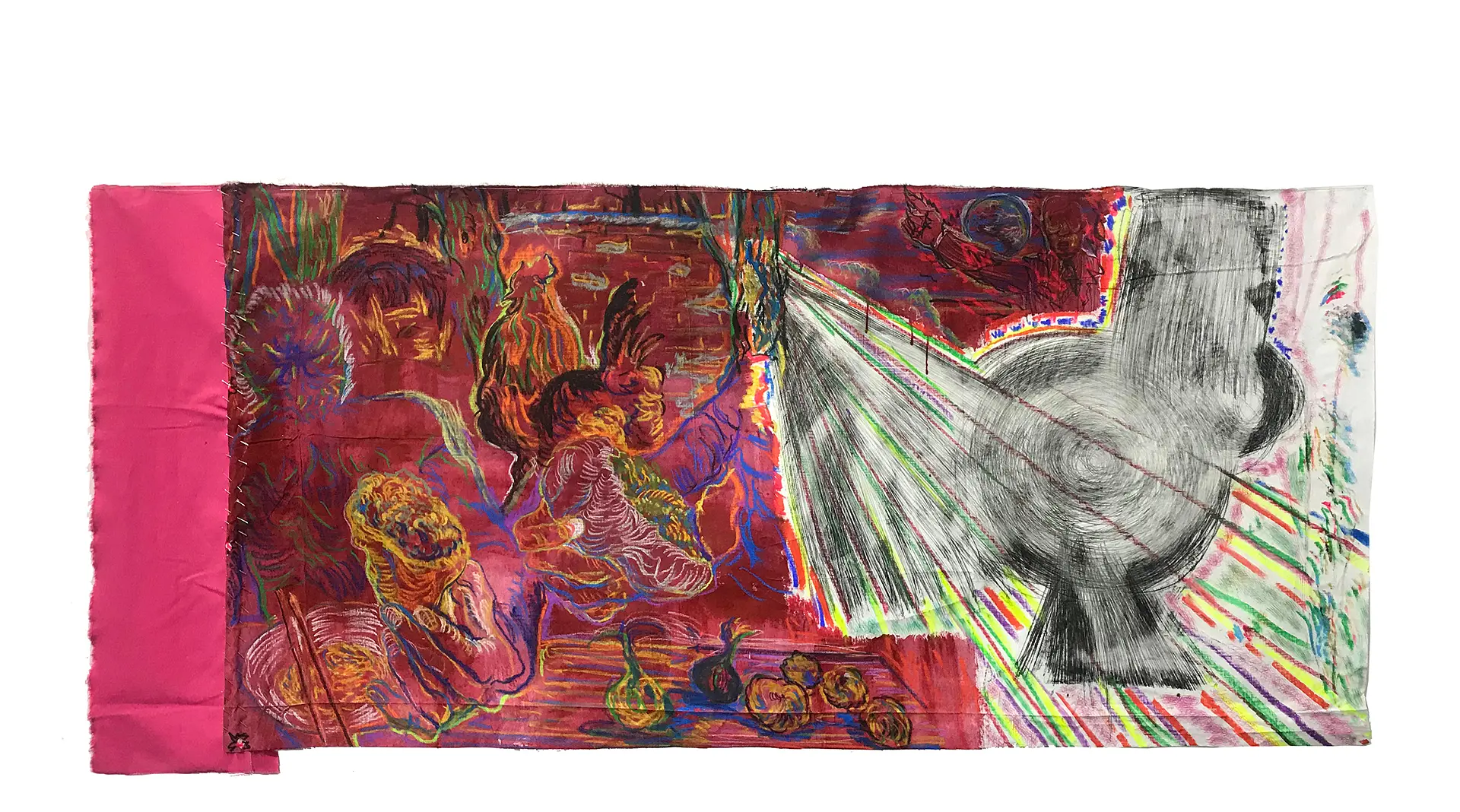 o*i様 「 乗せてゆくあの壁の向こうへ 」|絵画 原画 抽象画 動物画 ドロー 背を向ける2羽の鶏 Two chickens turning theirbacks by 于艾君 Yu